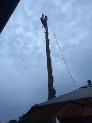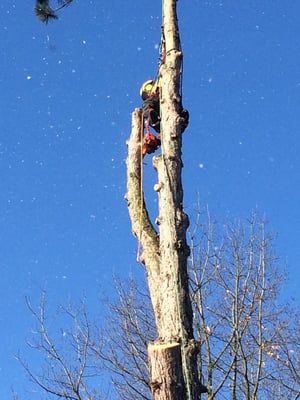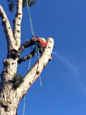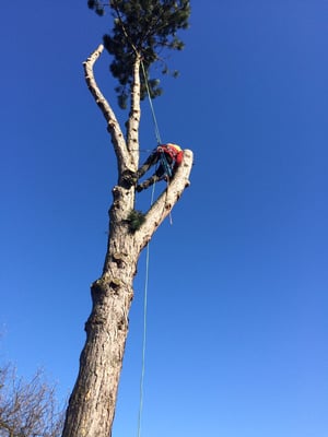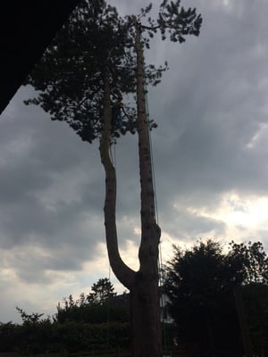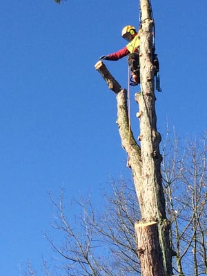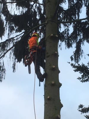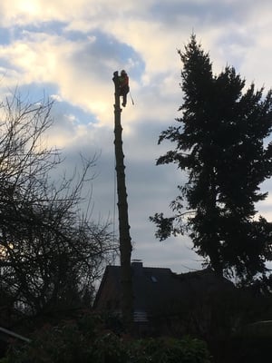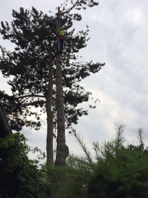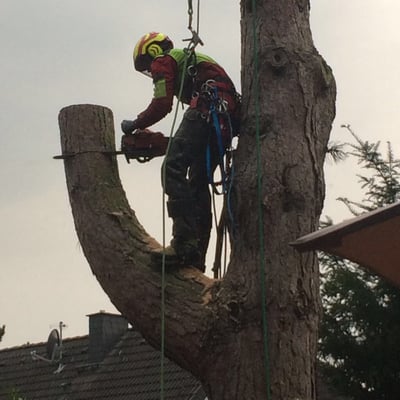 Unsere ausgebildeten Seilkletterer können auch an für Maschinen unzugänglichen Orten Bäume mittels Seilklettertechnik gefahrlos, Stück für Stück abtragen.
