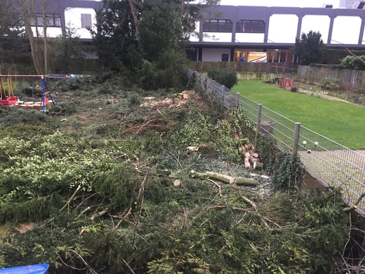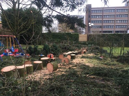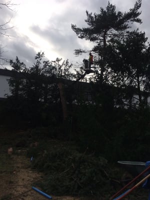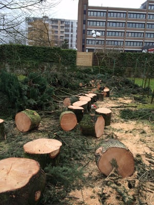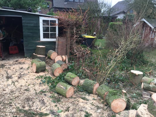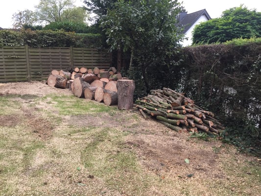Wir fällen nicht nur sondern entsorgen auch. Alternativ kann das Astwerk durch uns gehäckselt werden und verbleibt
