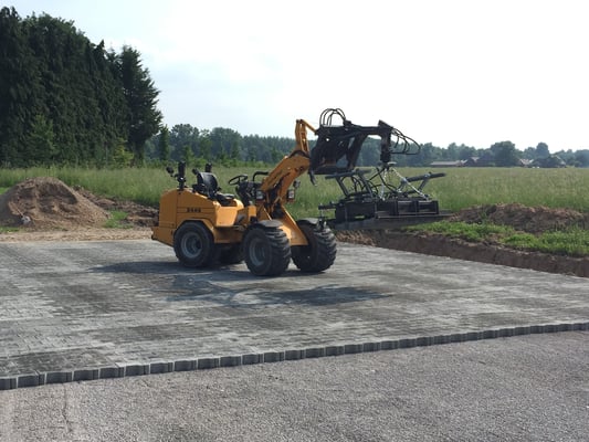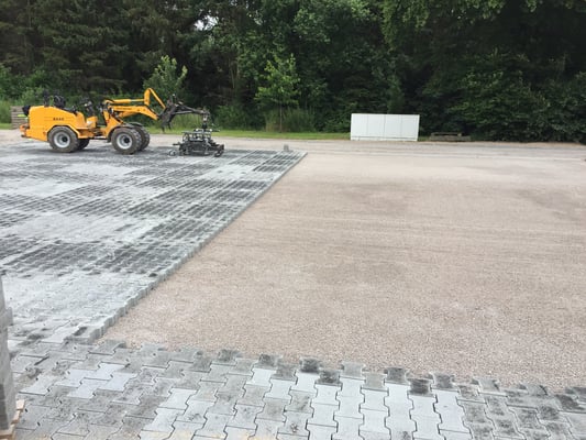 Mit unserer Verlegezange haben wir die Möglichkeit kosteneffizient und schnell große Flächen an Pflastersteinen zu verlegen.